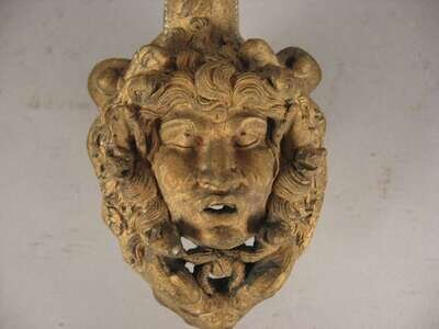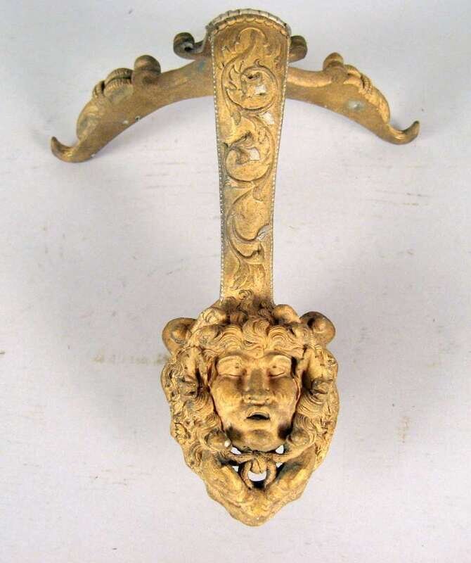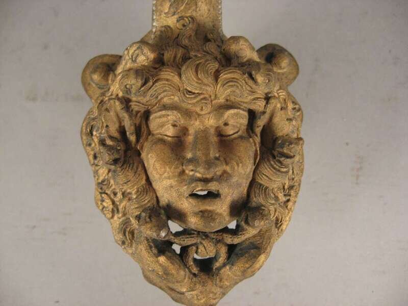 Formerly a mount to another item; with a matte gilt finish, of scroll outline and the handle modeled as a medusa's head.