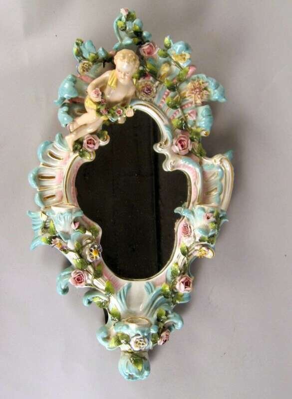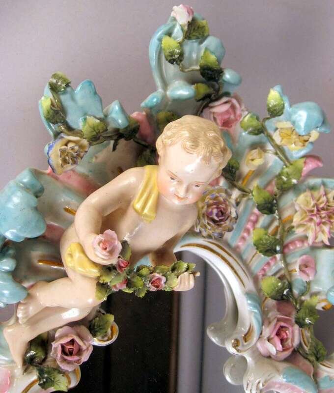 German porcelain shaped wall mirror late 19th/ early 20th century