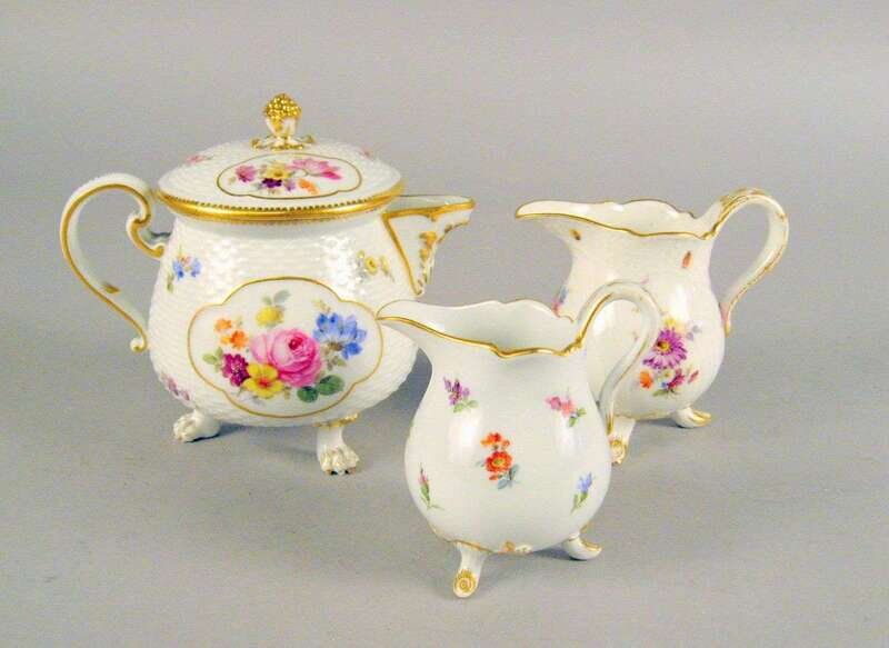 Group of three Meissen porcelain cream jugs