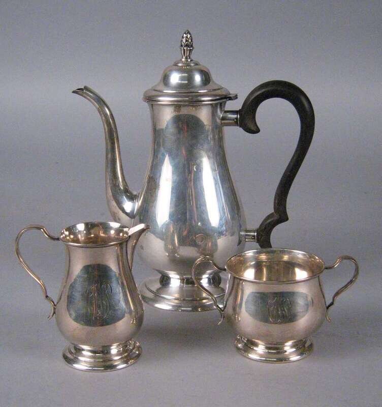 American sterling silver three piece coffee service lunt silversmiths, massachusetts, mid-20th century