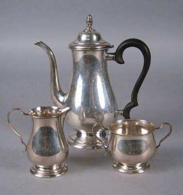 In the Georgian style, comprising a coffee pot, sugar bowl and cream jug. (3).