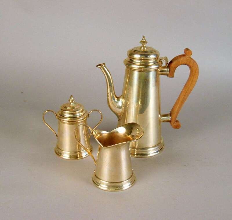 Comprising a coffee pot, cream jug and sugar bowl, each of tapered cylindrical form; the bases stamped '925/ INDUSTRIA ARGENTINA/ Hand Made/ STERLING'. (3).