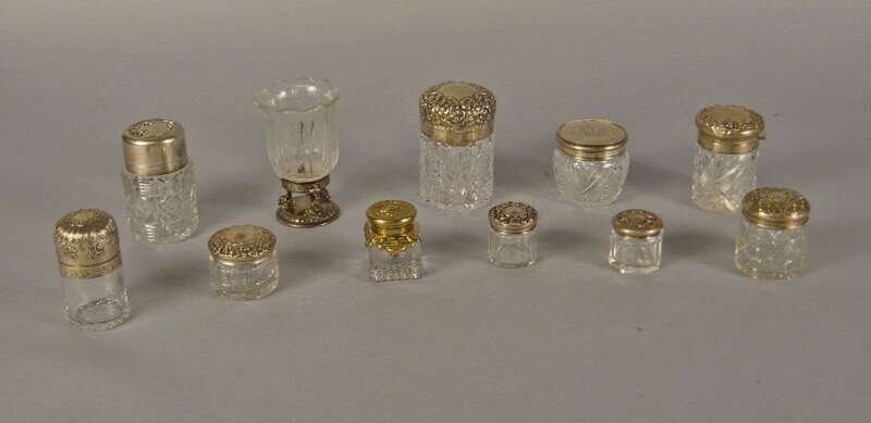 Eight American sterling silver mounted and cut glass vanity items 19th/ early 20th century