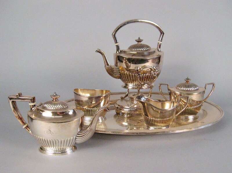 Gorham silver plate five-piece tea service and tray 1917
