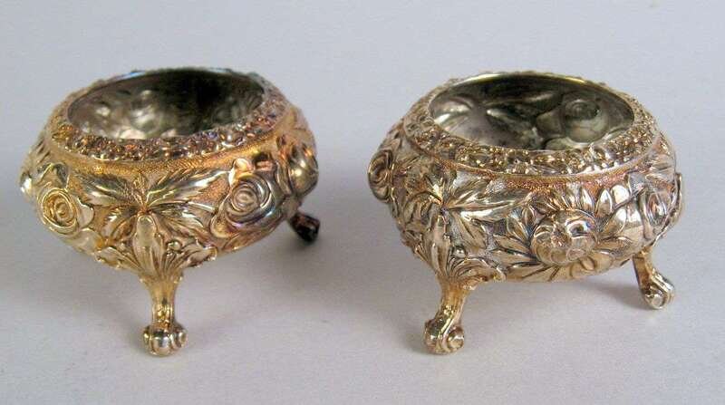 Pair of Stieff 'Baltimore Rose' pattern sterling silver open salts american, 1916
