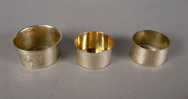 Cylindrical with three expanding parts decorated with a geometric design centered by a monogram 'SC'; in a fitted case with retailer's label for Budapest.