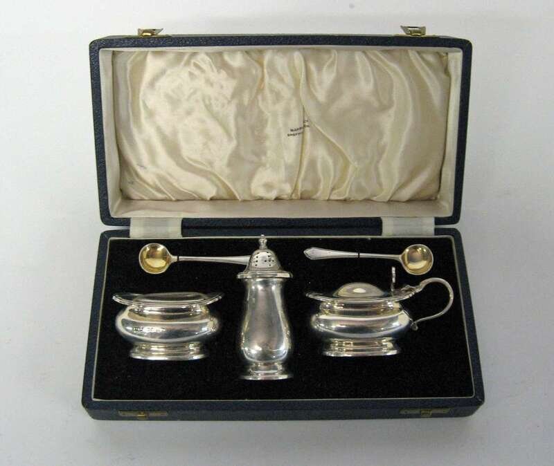 Mappin & Webb sterling silver condiment set sheffield, 1949