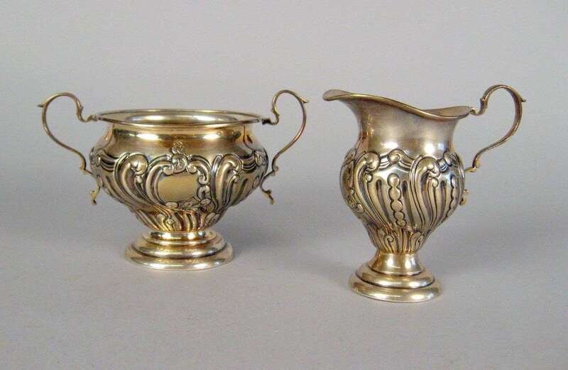 English sterling silver sugar bowl and cream jug charles weale, birmingham, 1904