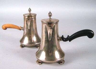Two English sterling silver chocolate pots holland, aldwinckle & slater, london, 20th century
