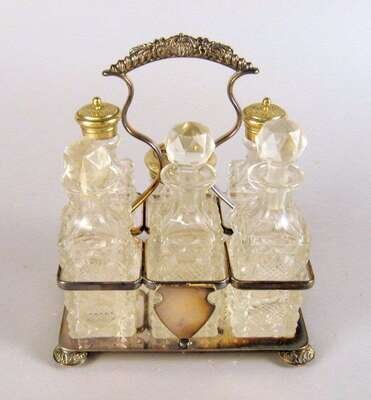 Sheffield silver plate and cut glass cruet set boardman, glossop & co., early 20th century