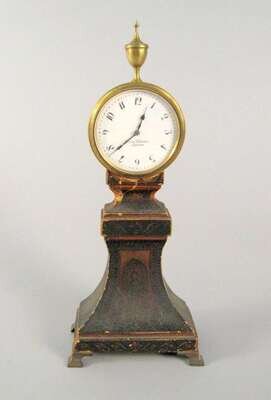 Small English pedestal table clock retailed by percy webster, london