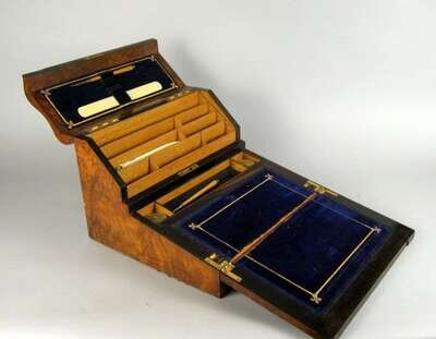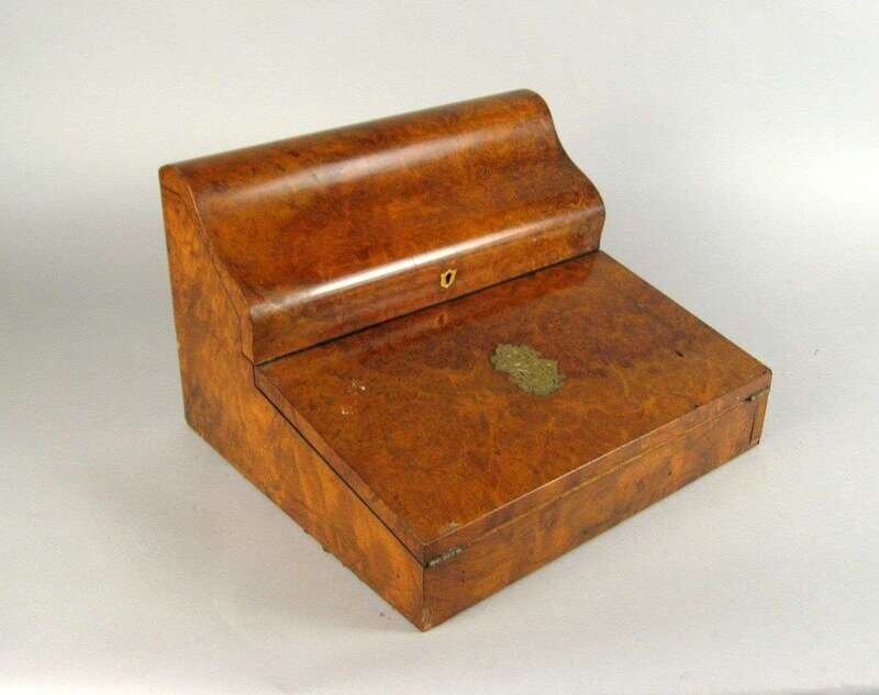 English burl walnut writing slope late 19th century