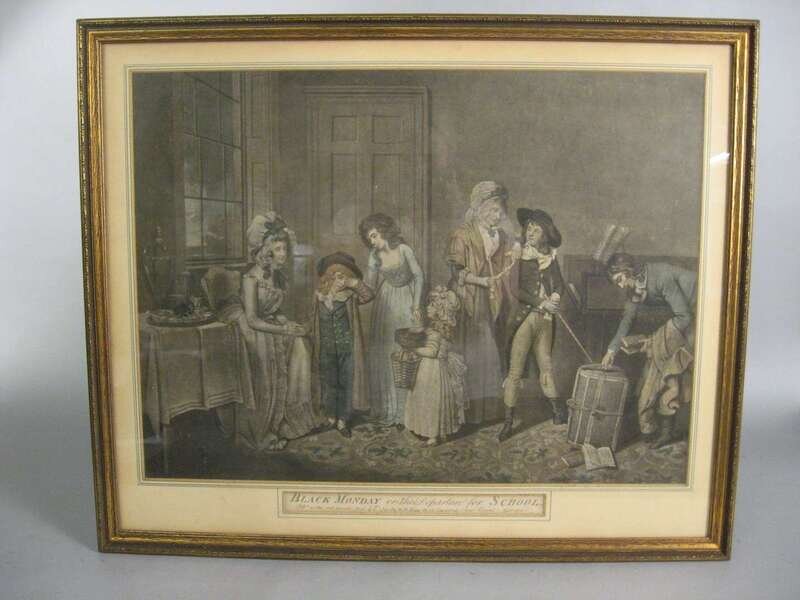 18th century English mezzotint black Monday or the departure for school