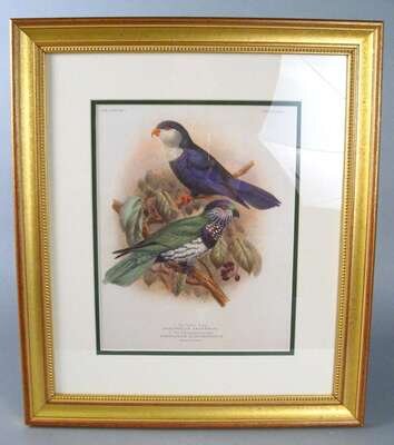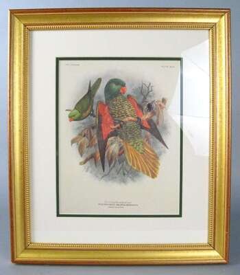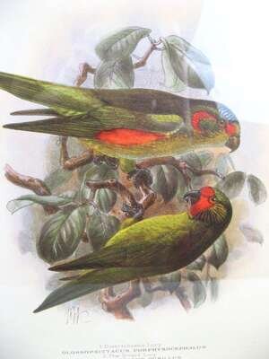 Five color lithographs of parrots after H.K. Keulemans after h.k. keulemans, published by r.h. porter, circa 1890