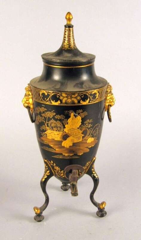 Decorated with Chinoiserie scenes, on cabriole legs.