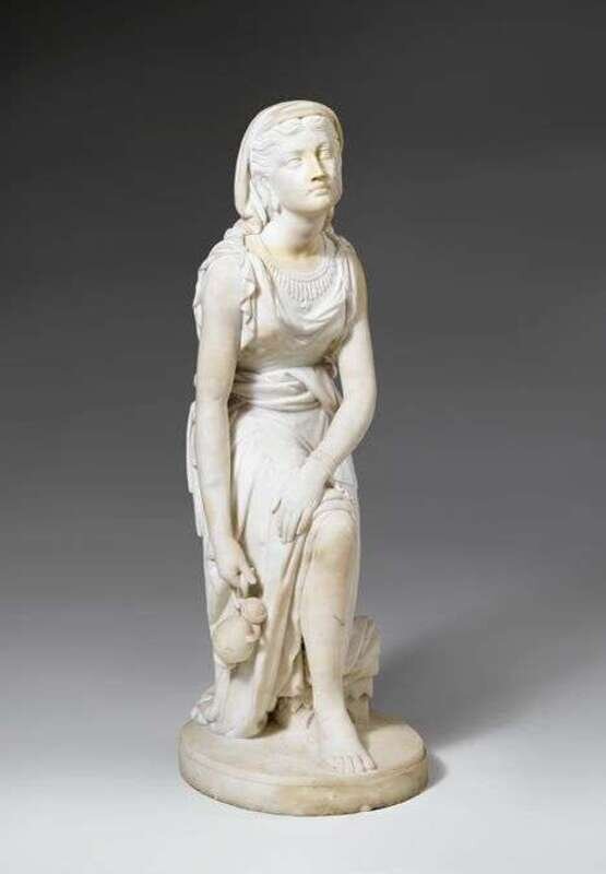 Marble, depicting a kneeling maiden, signed and dated 1872, restored.