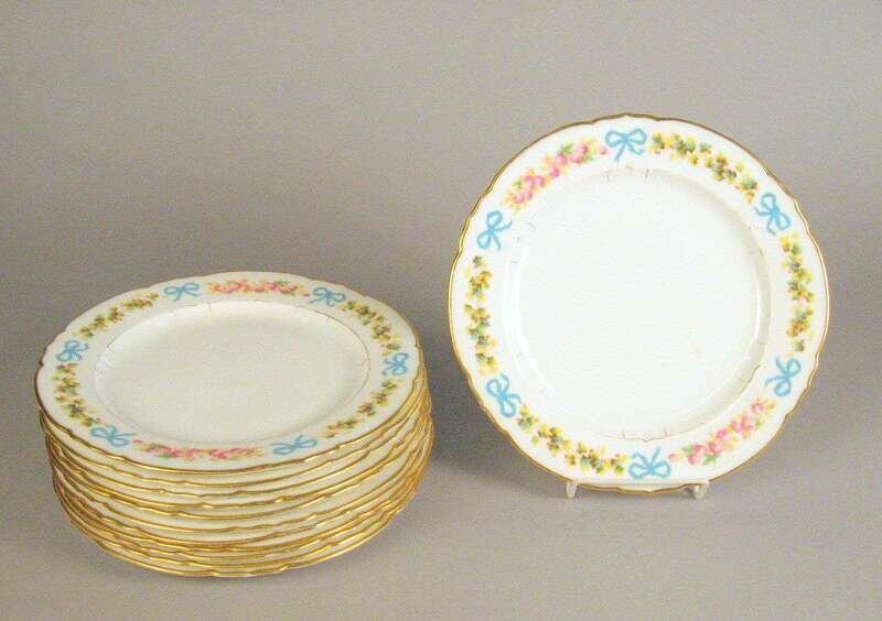 Set of twelve porcelain dinner plates retailed by bailey, banks & biddle of philadelphia