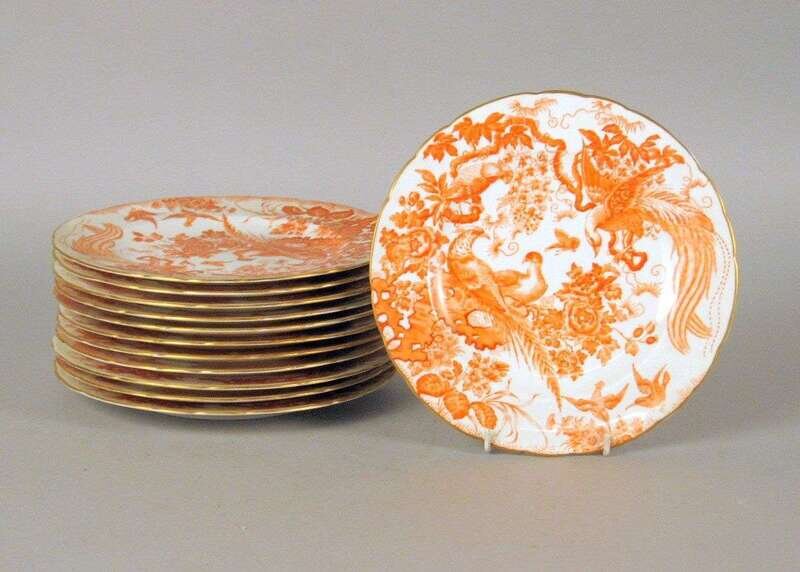 Twelve Royal Crown Derby 'Red Aves' pattern dinner plates 20th century