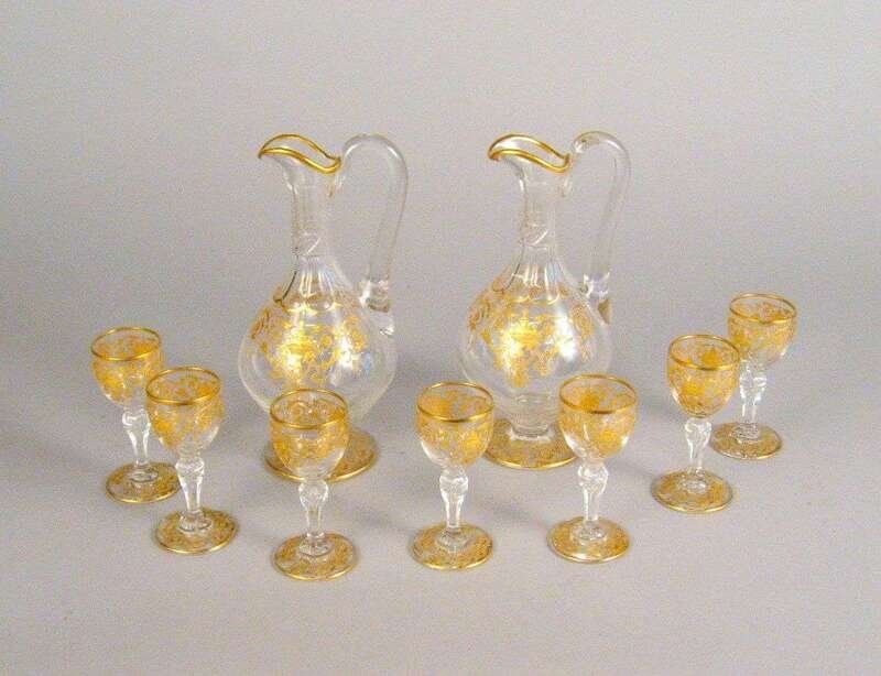 Gilt and cut glass liqueur set late 19th century
