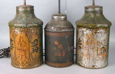 Group of three tole canisters 19th century
