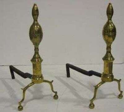 Pair of English brass baluster andirons