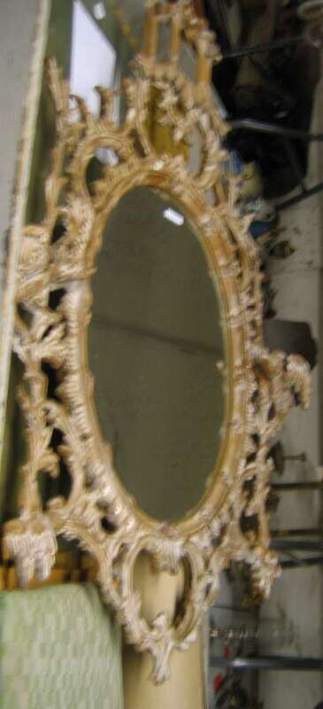 The oval mirrorplate surrounded by fretwork carved scrolls surmounted by a pagoda.