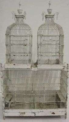 Victorian painted white wire work birdcage
