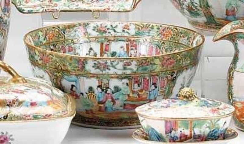 Chinese export porcelain Rose Mandarin punch bowl 19th century