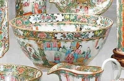 Chinese export porcelain Rose Mandarin punch bowl 19th century