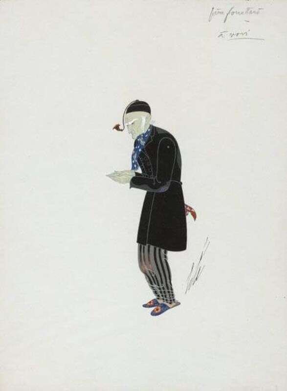 1923, signed 'Erté' lower right in ink, inscribed 'pére fouellard à voir' upper right in pencil, titled and inscribed 'N° 675' and dated 'XII-1923' in ink verso, gouache on paper