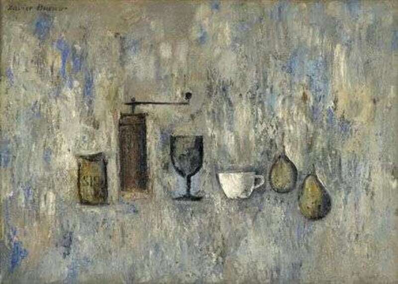 XAVIER BUENO (ITALIAN 1915-1979) STILL LIFE WITH PEPPER MILL, VESSELS AND PEARS