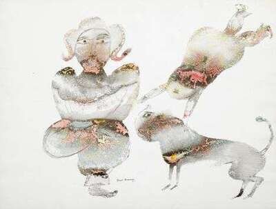 SAKTI BURMAN (INDIAN B. 1935) TWO FIGURES WITH ANIMAL
