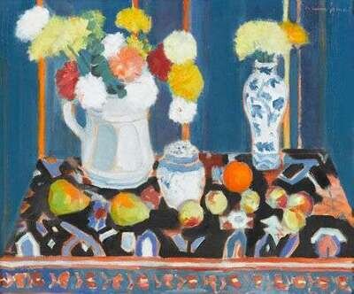 WARREN BRANDT (AMERICAN 1918-2002) "STILL LIFE ON RUG"