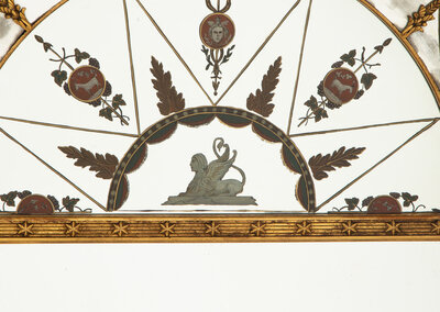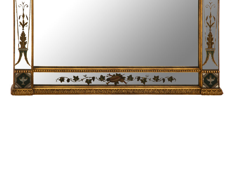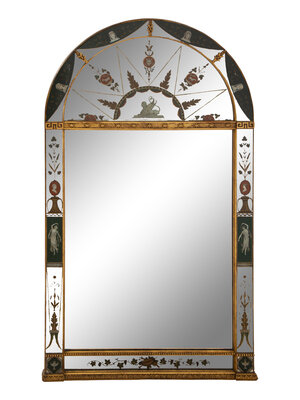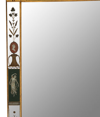 A Neoclassical Style Reverse-Painted Glass and Giltwood Mirror