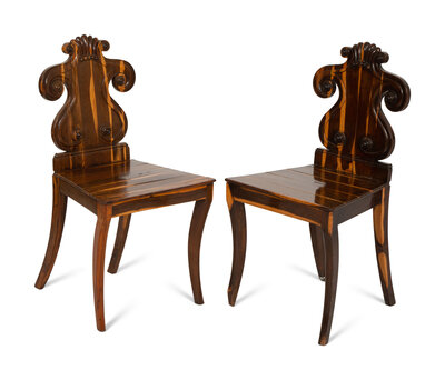 A Pair of Regency Style Calamander Hall Chairs