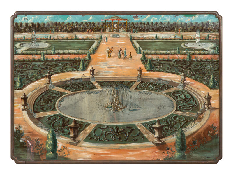 A Reverse-Painted Mirror Panel of a Baroque Garden