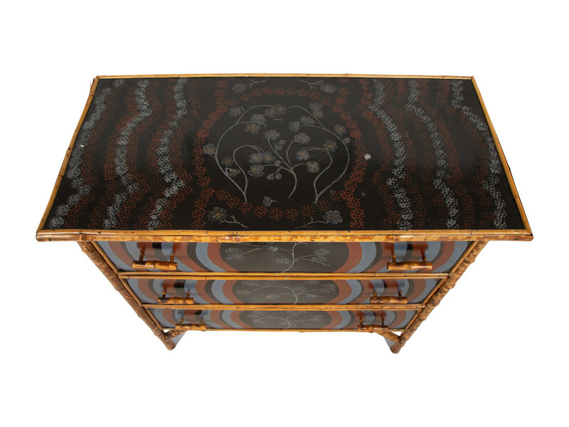 An English Bamboo and Lacquer Chest of Drawers