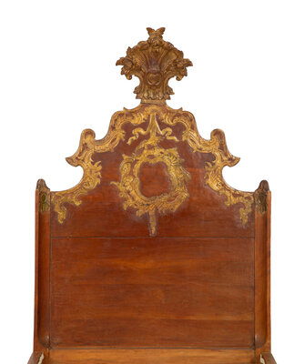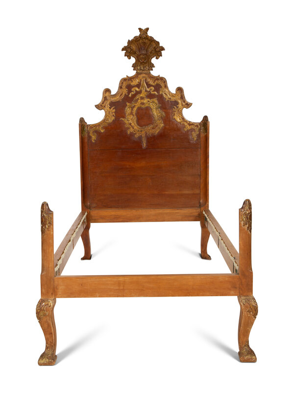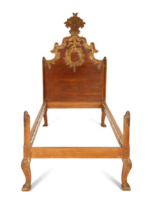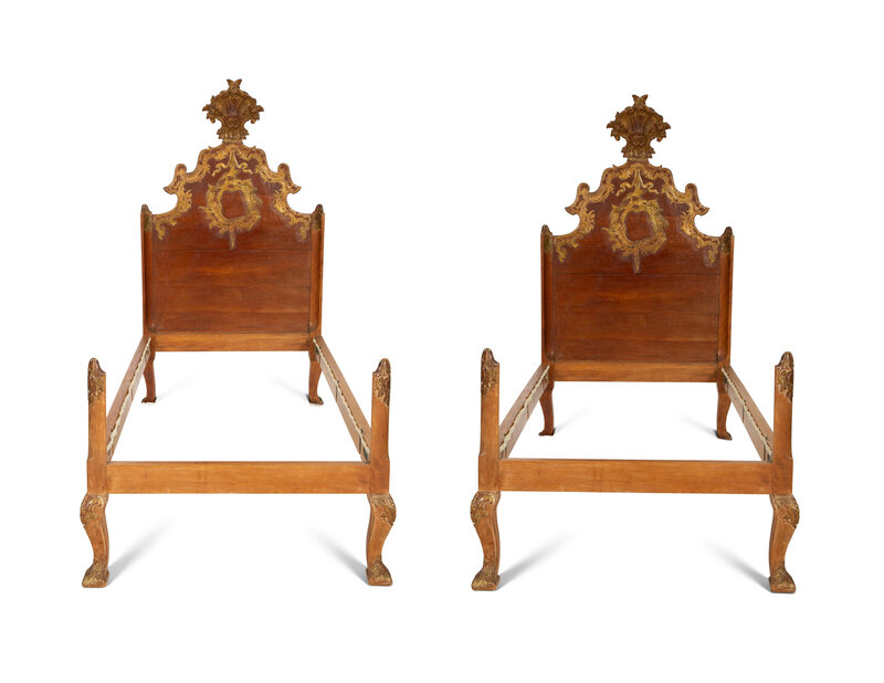 A Pair of Venetian Style Fruitwood and Parcel Gilt Twin Beds