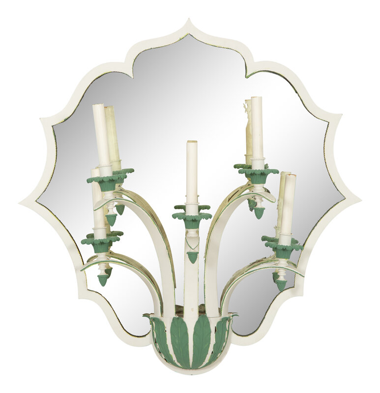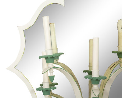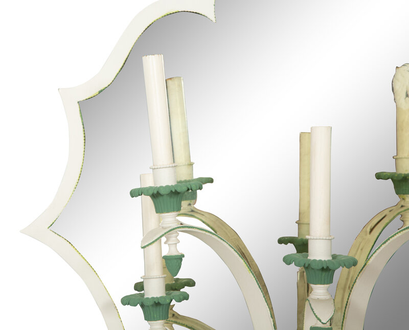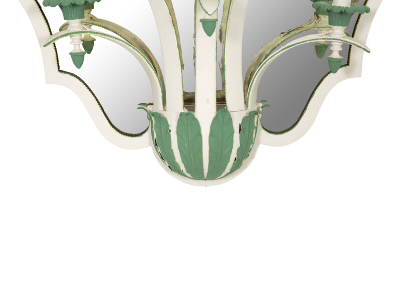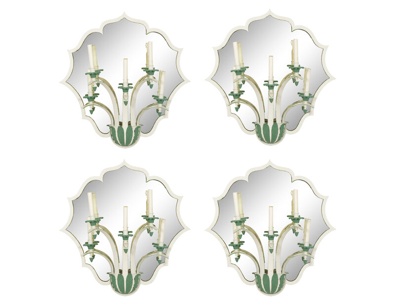 A Set of Four Green and White Painted Five-Light Girandole Mirrors
