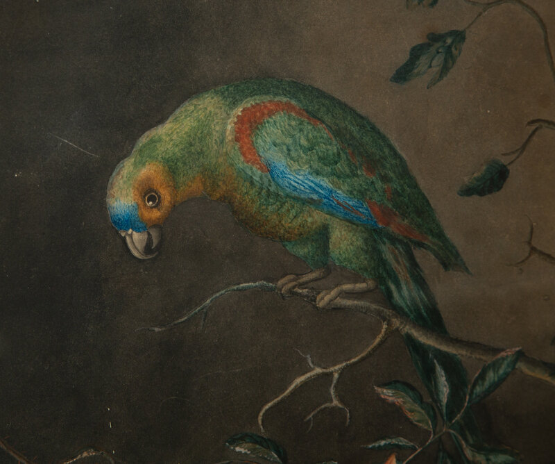 A Parrot with Shells and Roses