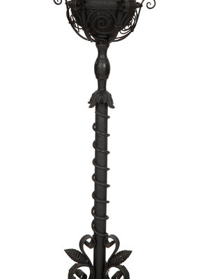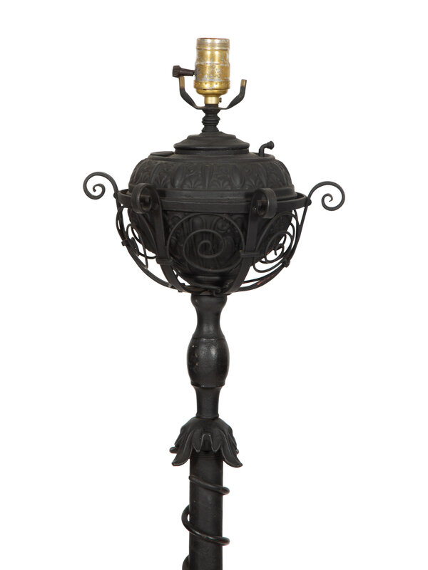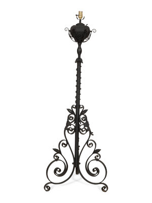 A Painted Wrought Iron Torchère Mounted as a Floor Lamp