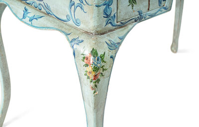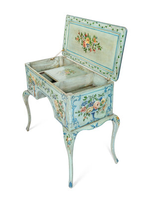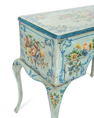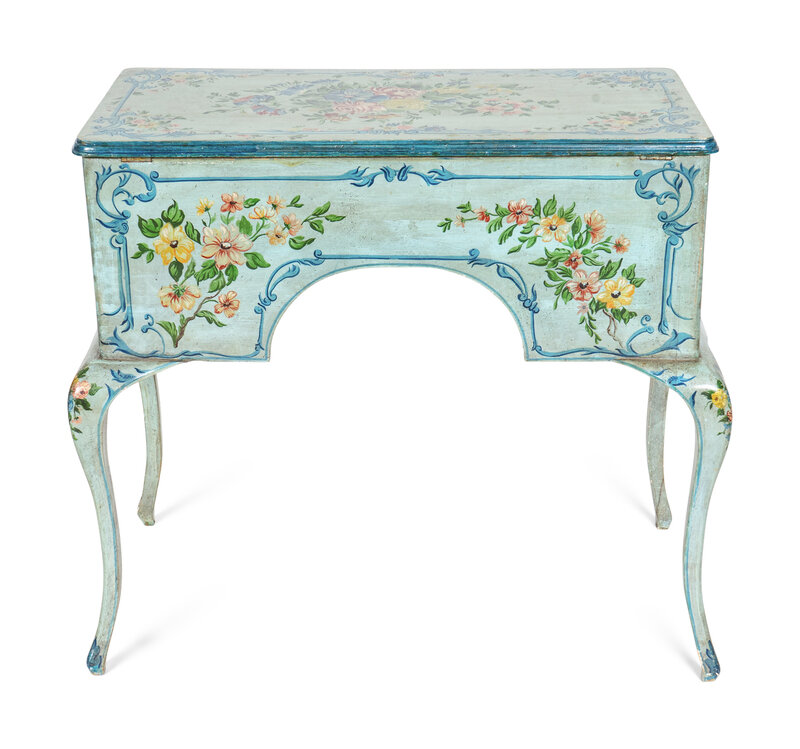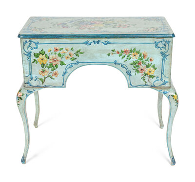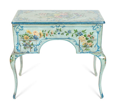 A Louis XV Style Painted Dressing Table with Polychromed Floral Decoration