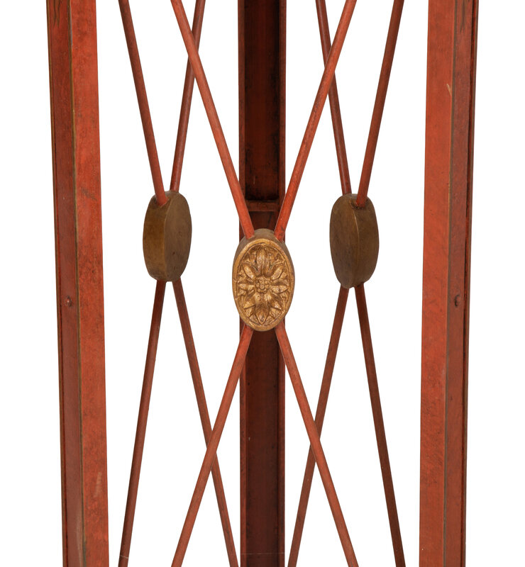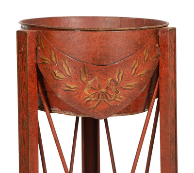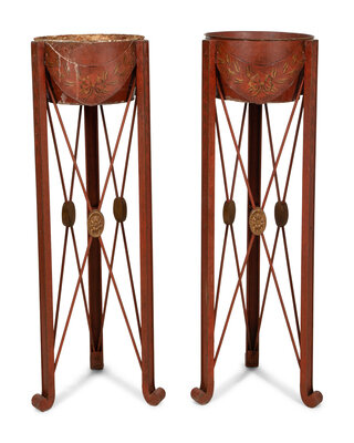 A Pair of Red and Gold Tole Peinte Jardiniere Stands