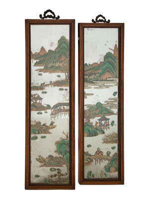 A Pair of Chinese Reverse-Painted Glass Pier Mirrors