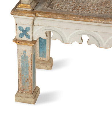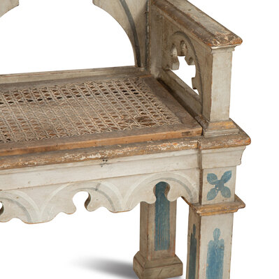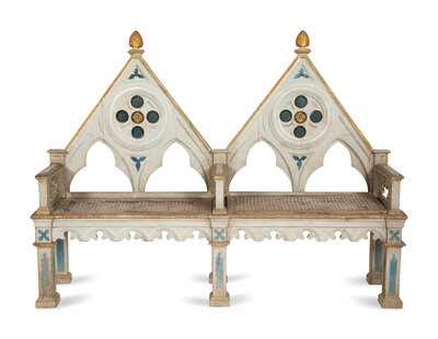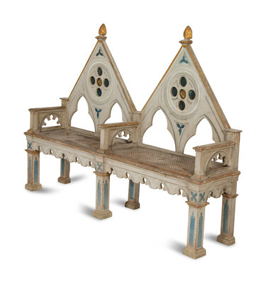 A Neo-Gothic Trompe l'oeil Painted and Parcel Gilt Hall Bench