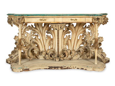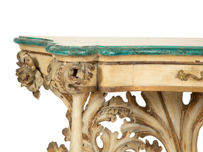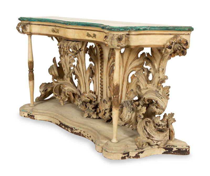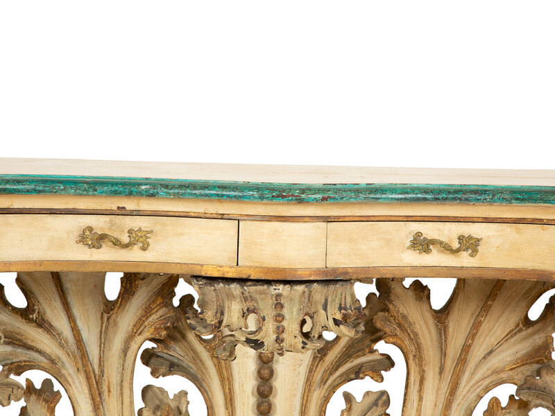 An Italian Cream and Green-Painted and Parcel Gilt Console Table