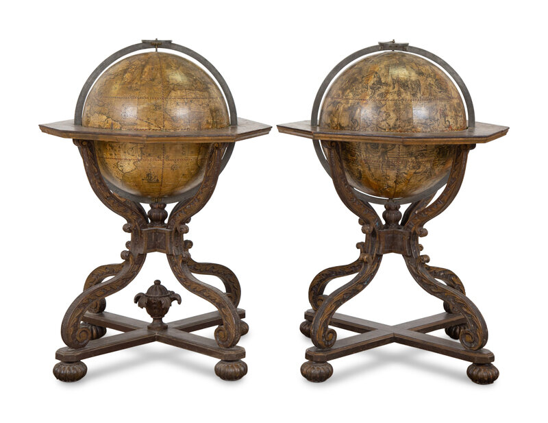 A Pair of Continental Terrestrial and Celestial 17-inch Library Globes on Stands