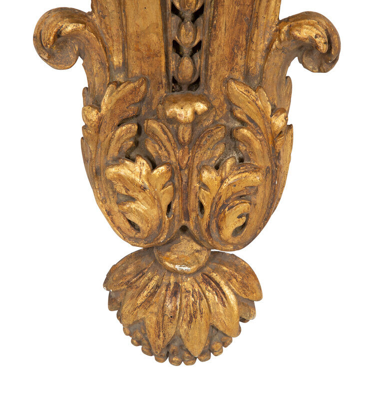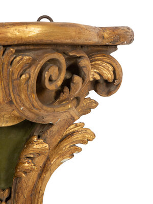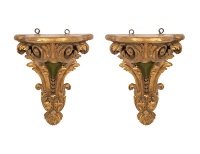 A Pair of Continental Parcel Gilt and Green-Painted Large Wall Brackets