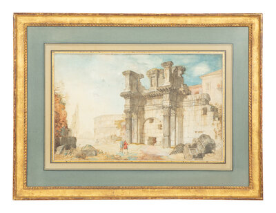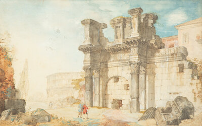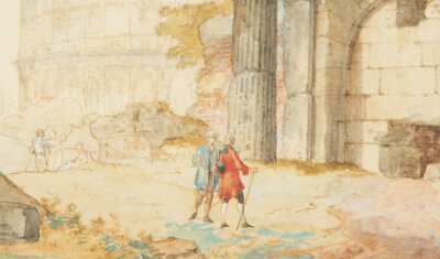 Connoisseurs Viewing the Temple of Minerva Behind the Colosseum