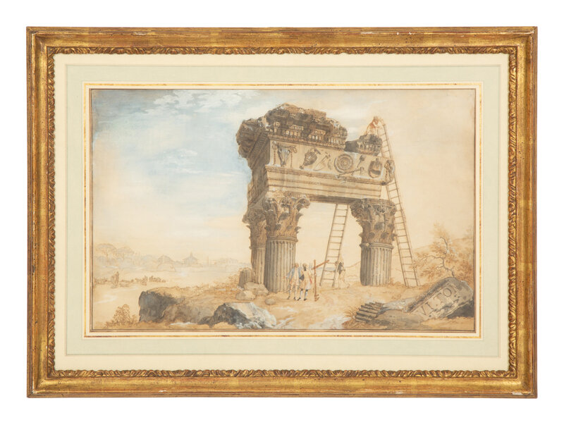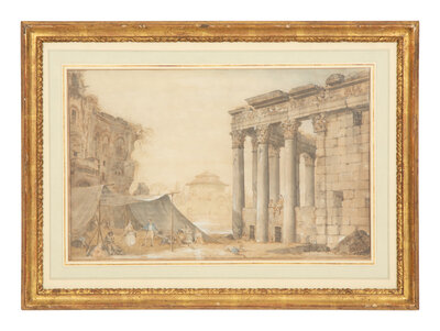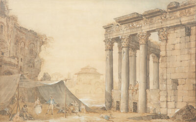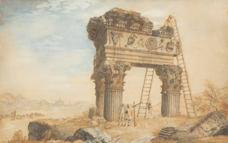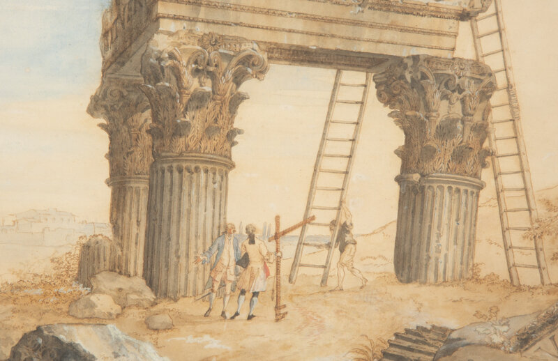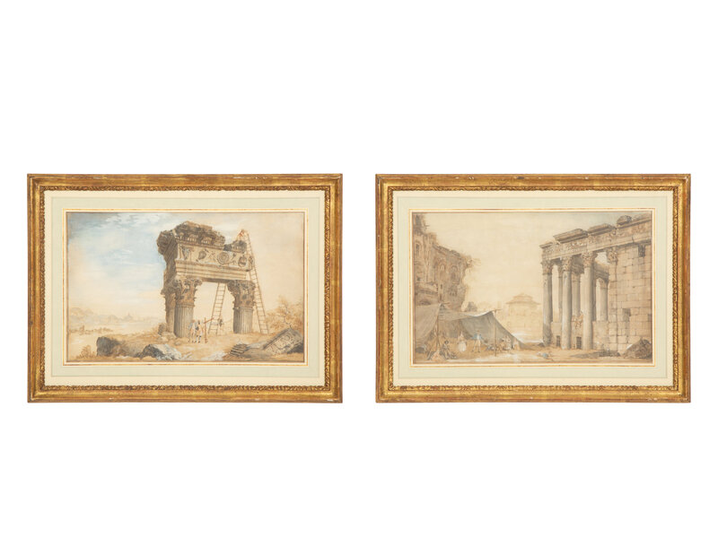 Architects Measuring the Temple of Jupiter Tonans and Revelers Near the Temple of Antonino and Faustina (two works)